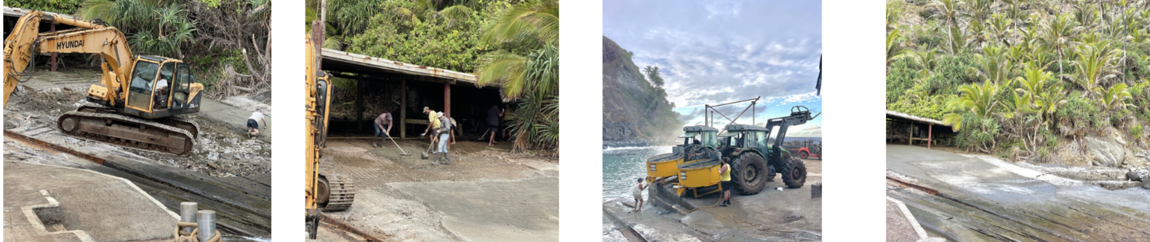 The harbor slipway at Bounty Bay has been freshly completed after an impressive three days of dedicated work. Starting on Monday, 21 July, the crew worked from morning until night, making the most of the tides to pour and set the cement.